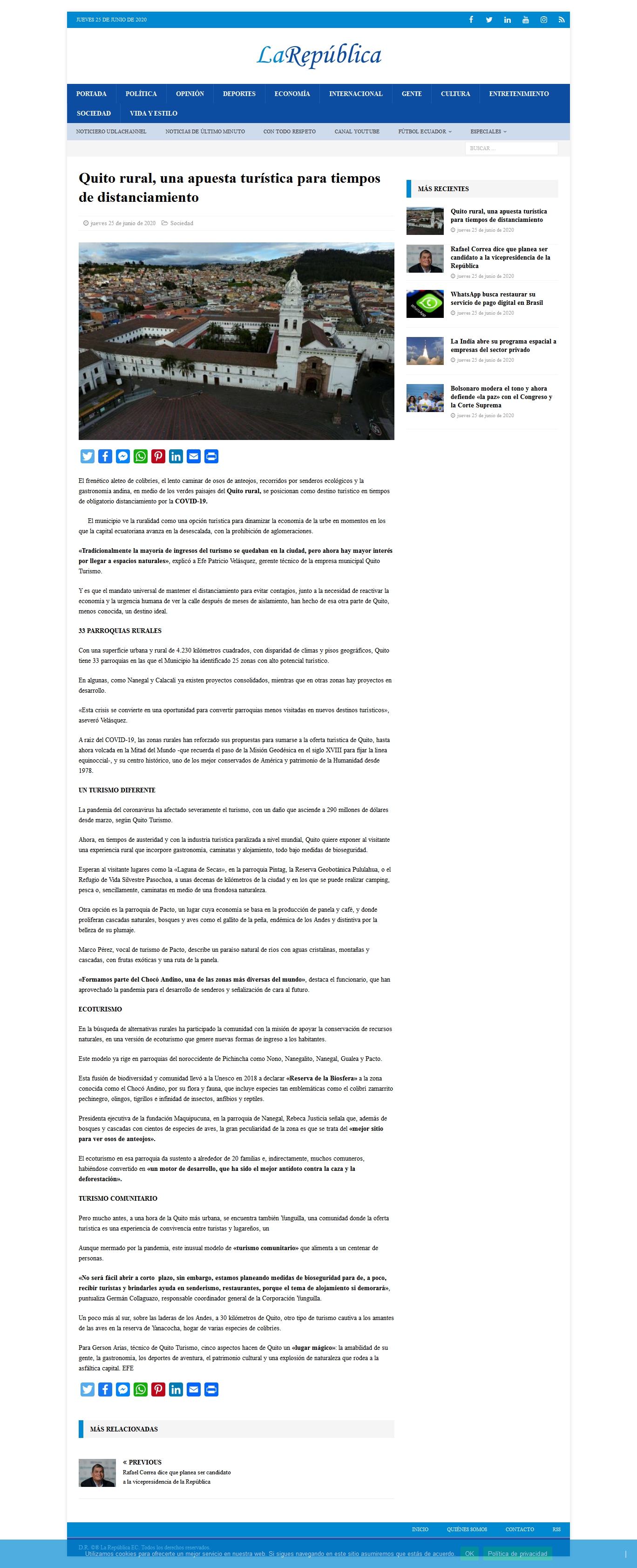 Fecha: 10 de julio de 2020 Medio: Teleamazonas Descripción: En época de coronavirus el turismo rural se presenta como una alternativa para disfrutar de la naturaleza. Son más de 25 proyectos recreativos en las parroquias de Quito con un alto potencial turístico. Disfrutar de la naturaleza y de la deliciosa gastronomía es parte de [...]