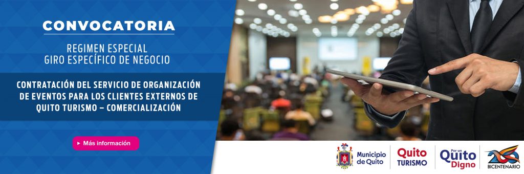 La Empresa Pública Metropolitana de Gestión de Destino Turístico – Quito Turismo, encargada de la promoción nacional e internacional del Distrito Metropolitano de Quito, convoca a las Personas Naturales y Jurídicas a participar en el siguiente procedimiento de contratación: