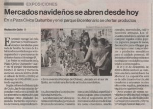 Según informó el Municipio de Quito, las ferias estarán decoradas con luces y al estilo de los pintorescos mercados que albergan otras ciudades del mundo.
