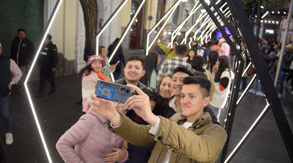 Los diseños artísticos con la técnica de mapping, proyectados en las fachadas de San Francisco, Santo Domingo y el Teatro Sucre fueron los protagonistas en una fiesta que se completó con luces inmersivas y más representaciones artísticas, como los globos de luz en el Bulevar 24 de Mayo y la activación lumínica con una luna decorativa en La Ronda, mientras que la Plaza Hermano Miguel y la Calle Espejo tuvieron activaciones de luces inmersivas musicalizadas por un DJ.