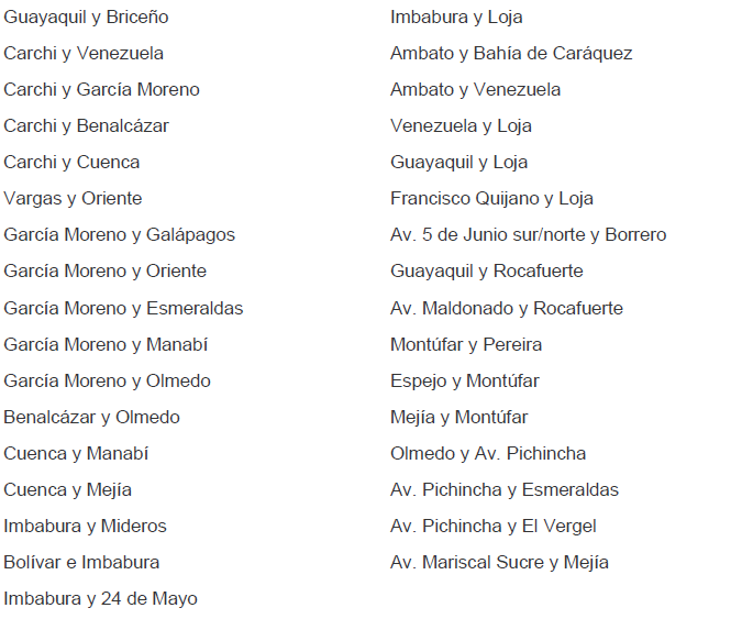 Av. Mariscal Sucre, Av. Pichincha, Av. Velasco Ibarra, Av. 10 de Agosto, Av. Gran Colombia, Viaducto 24 de Mayo.