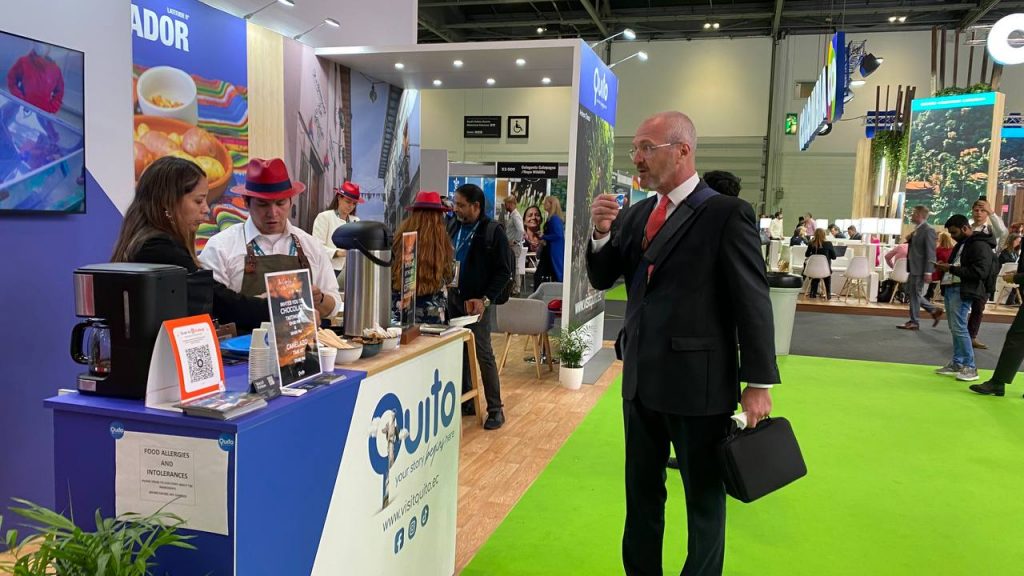 La mañana de este lunes 6 de noviembre, la gerente técnica de Quito Turismo, Giohana Albuja, inauguró el estand con un mensaje previo en el que deseó éxitos a quienes asisten a la feria. “Hemos venido con el objetivo de conquistar este mercado, el europeo y el británico, mostrar todo nuestro encanto y nuestros atractivos a este, un mercado importante para Quito y el país”, acotó.