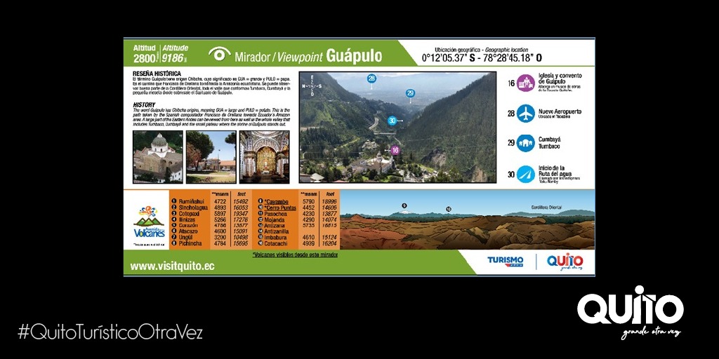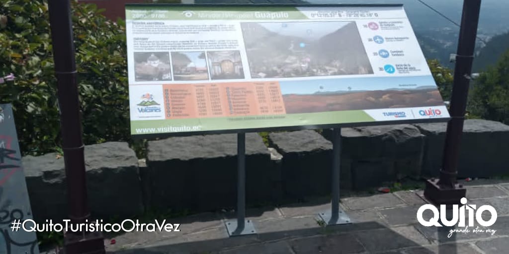 El Cabildo capitalino, a través de la Empresa Pública Metropolitana de Gestión de Destino Turístico – Quito Turismo, realizó el mantenimiento de los paneles informativos en los miradores del Panecillo, Panecillo Sur, San Juan y Guápulo.