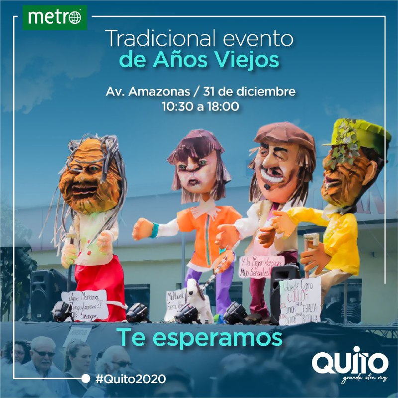 Quiteños y visitantes podrán asistir a uno de los eventos más arraigados y difundidos en la capital durante la celebración del fin de año, el “Concurso de años viejos tradicionales” que se realizará el próximo 31 de diciembre, en el norte de Quito. Un programa familiar y de los más inspiradores antes de iniciar una nueva etapa.