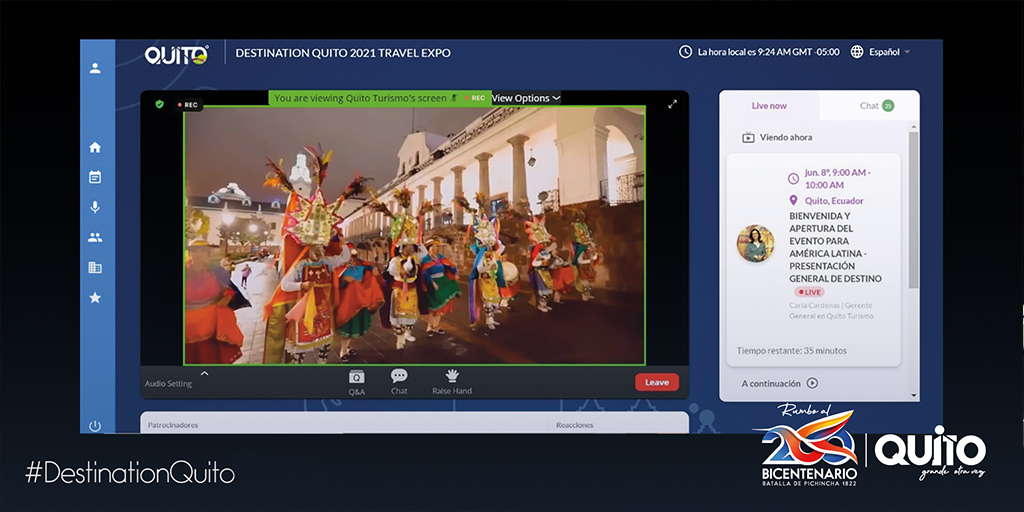 En ese marco, diseñó la primera feria virtual de turismo de la ciudad “Destination Quito Travel Expo 2021”, un espacio para mostrar al mundo la amplia oferta turística que ofrece el destino y para generar nuevos negocios que impulsen la recuperación del turismo en la Capital del Centro del Mundo.