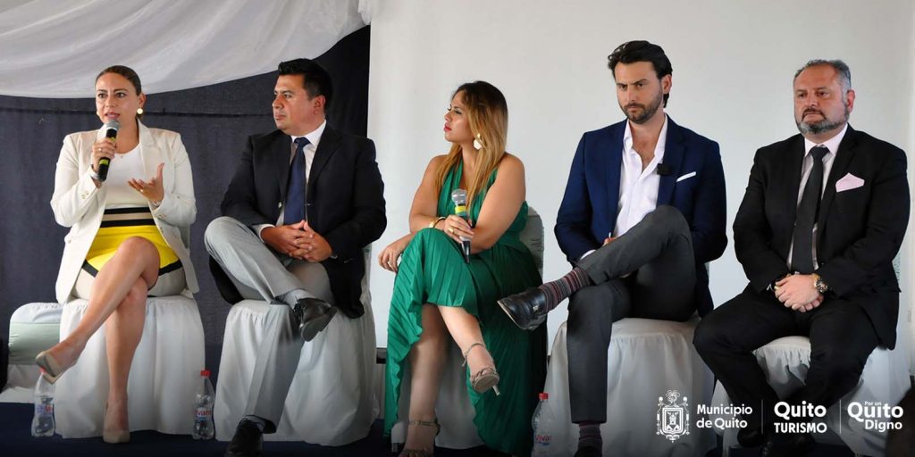 Cristina Rivadeneira, gerente General de Quito Turismo, participó en el Foro Nacional de Turismo junto al ministro del ramo, Niels Olsen; el director de Turismo de la Prefectura de Chimborazo, Luis Falconí; y representantes de agencias de viaje, quienes dieron su perspectiva para fortalecer este sector productivo en el país.