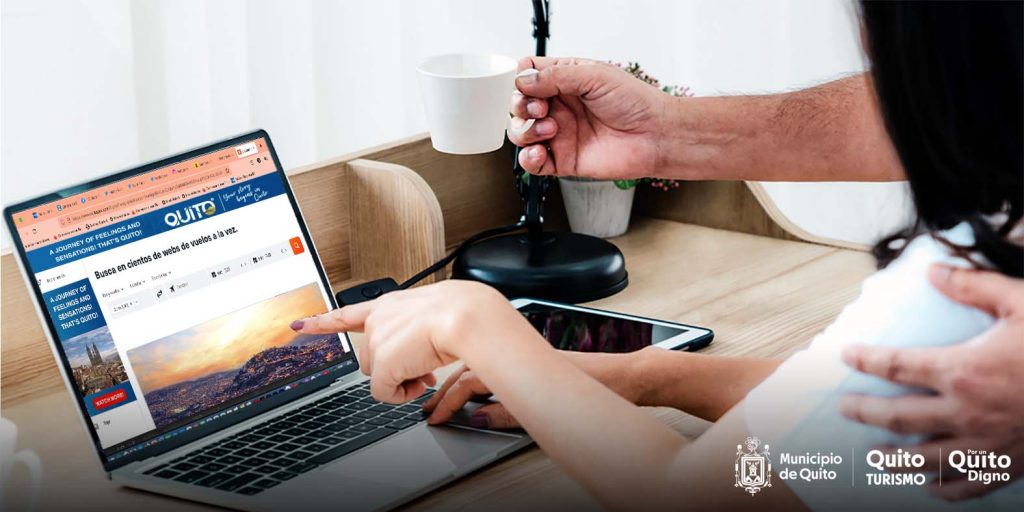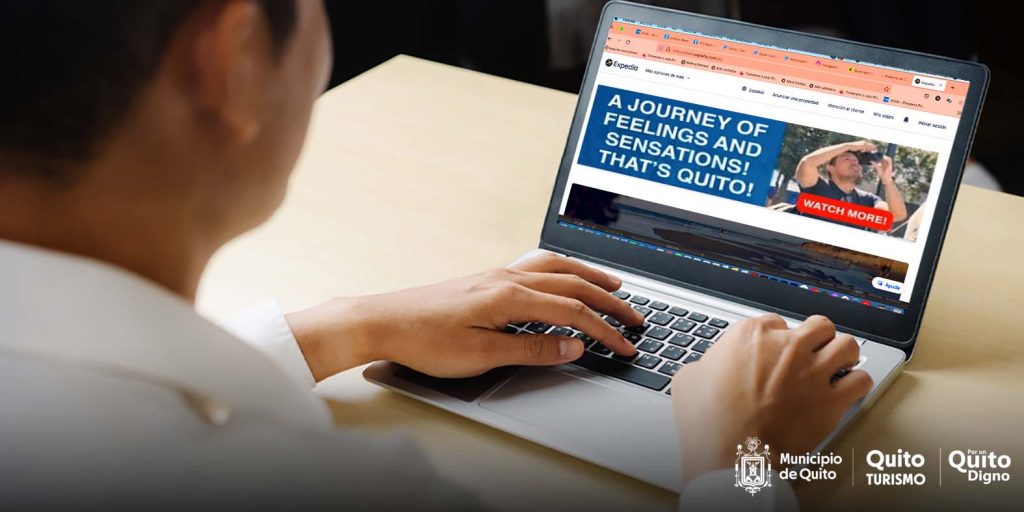 En ese marco, se impulsaron dos campañas digitales internacionales de alto impacto. La primera se realiza de forma cooperada con Expedia y Latam Airlines, para que los usuarios de Estados Unidos puedan ver la oferta turística de Quito: vuelos, restaurantes, alojamiento experiencias y más; en banners, videos, pantallas flotantes y otros recursos que ofrece la plataforma digital de esta agencia de viajes en línea (OTA, por sus siglas en inglés).