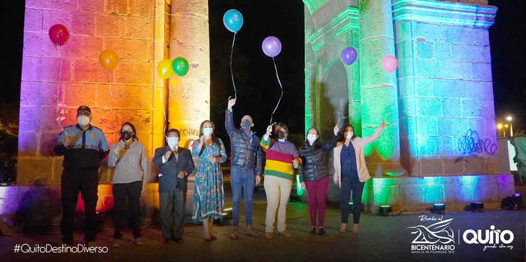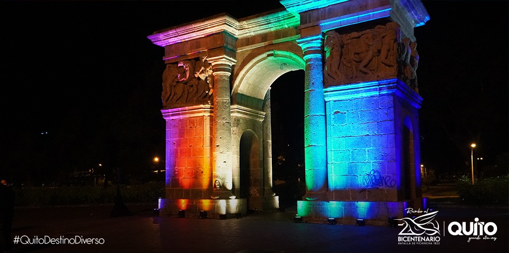 En ese marco, este 28 de junio, a propósito del Día Internacional del Orgullo LGBTIQ+, Quito Turismo iluminó con los colores de la bandera arcoíris el emblemático Arco de la Circasiana, ubicado en el Parque de El Ejido.