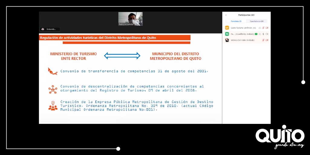 Tema: ‘Alcance de las competencias de la Agencia Metropolitana de Control y la Empresa Pública Metropolitana de Gestión de Destino Turístico – Quito Turismo’.