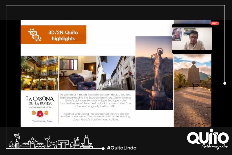 | El Municipio de Quito, a través de Quito Turismo, impulsa mes a mes jornadas de capacitación online, factor clave para la reactivación del sector turístico que permitan generar confianza en los turistas para volver a recorrer la ciudad. En la semana del 4 al 6 de noviembre, se desarrollaron tres importantes capacitaciones: un workshop a 77 mayoristas y agentes de viaje peruanos, quienes conocieron la oferta turística de la Capital del Centro del Mundo, de la mano de 12 tour operadores y prestadores de servicios turísticos locales. Además, junto al sector privado del segmento de reuniones y el servicio de seguridad turística de la Policía Nacional, se trabajó en la sensibilización del turismo MICE para generar una experiencia enriquecedora en la visita a Quito. Así también, representantes de establecimientos turísticos de la parroquia de Atahualpa, fueron capacitados en el tema de emprendimiento. A partir de la siguiente semana –del 9 al 13 de noviembre- se desarrollarán dos capacitaciones gratuitas sobre la implementación de protocolos de bioseguridad, enfocadas a diferentes públicos, con la finalidad de mantener los mecanismos preventivos para la protección de la salud. A continuación, las temáticas, fechas y horarios: Tema: ‘Implementación del protocolo de bioseguridad para guías de turismo -Atahualpa’. Fecha: jueves, 12 de noviembre Hora: 16:30 a 17:30 Dirigido a: guías de turismo de la parroquia de Atahualpa. Tema: ‘Protocolos de bioseguridad – Policía Comunitaria y de Turismo’. Fecha: viernes, 13 de noviembre Hora: 16:00 a 17:30 Dirigido a: miembros de la Unidad de Policía Comunitaria y de Turismo. Para mayor información contáctate a: lcriollo@quito-turismo.gob.ec Con estas acciones, ratificamos nuestro compromiso con la ciudadanía y el sector turístico en el fortalecimiento de conocimientos que permitan brindar servicios de calidad, enfocados a la nueva normalidad. |