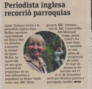 Descripción: Quito Turismo invitó a la periodista inglesa Kate McRae, escritora especializada en flora y fauna silvestre, a recorrer la ciudad de Quito.